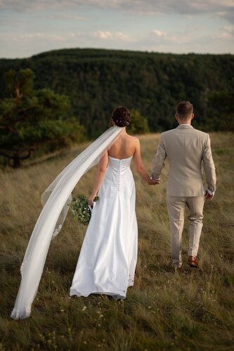 Oblečení Vám odevzdáme k Vaši stoprocentní spokojenosti. Když po svatbě budete chtít šaty přešít na běžné nošení, jsme Vám k službám.